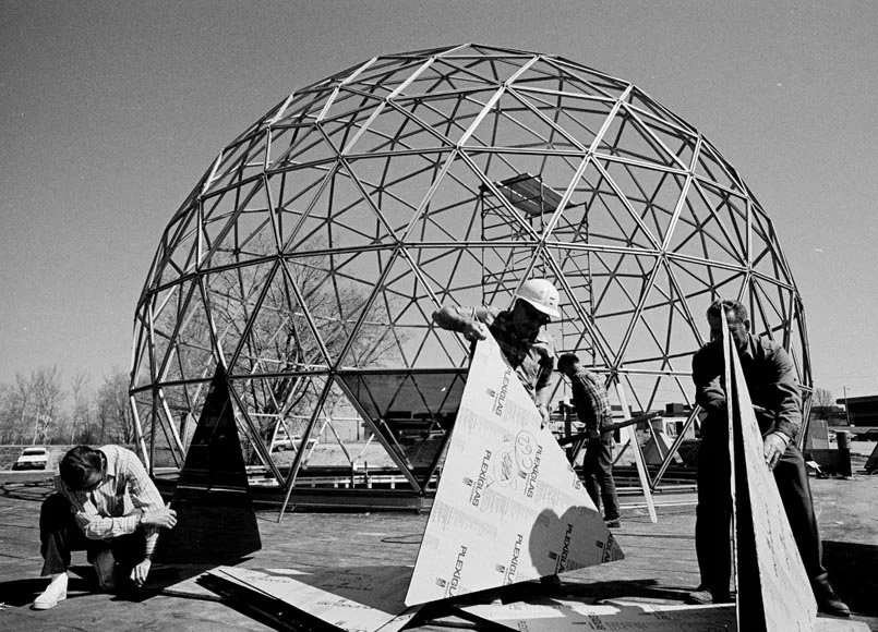 It was during his time at SIU that Fuller launched the World Design Science Decade and developed the World Game, conceived as an alternative to war games and a tool for understanding global systems. While teaching, he also continued work that resonated around the world: in 1967 he designed the United States pavilion for the Montreal World’s Fair, a striking geodesic dome now known as the Montreal Biosphère.