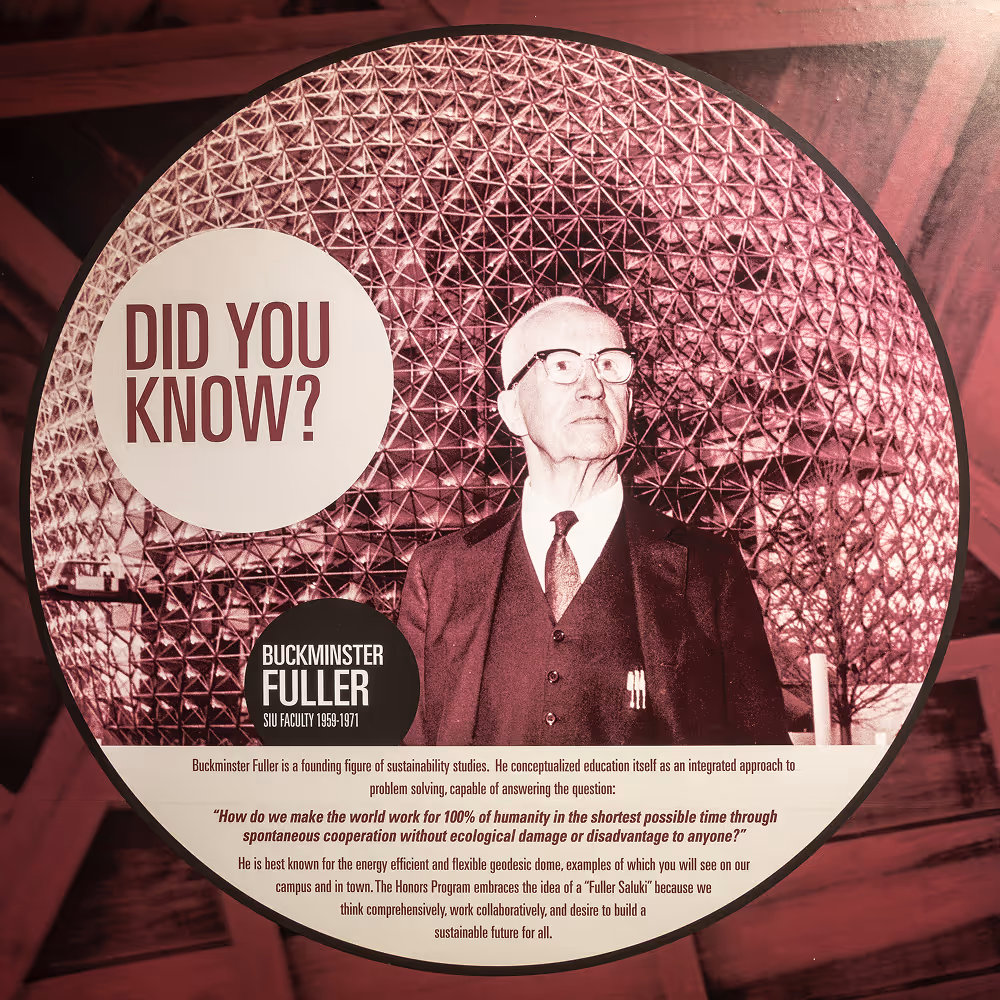 Fuller’s work at SIU was collaborative and influential. He engaged with students and colleagues across disciplines, shaping ideas that continue to inform design science, sustainability, and systems thinking today.